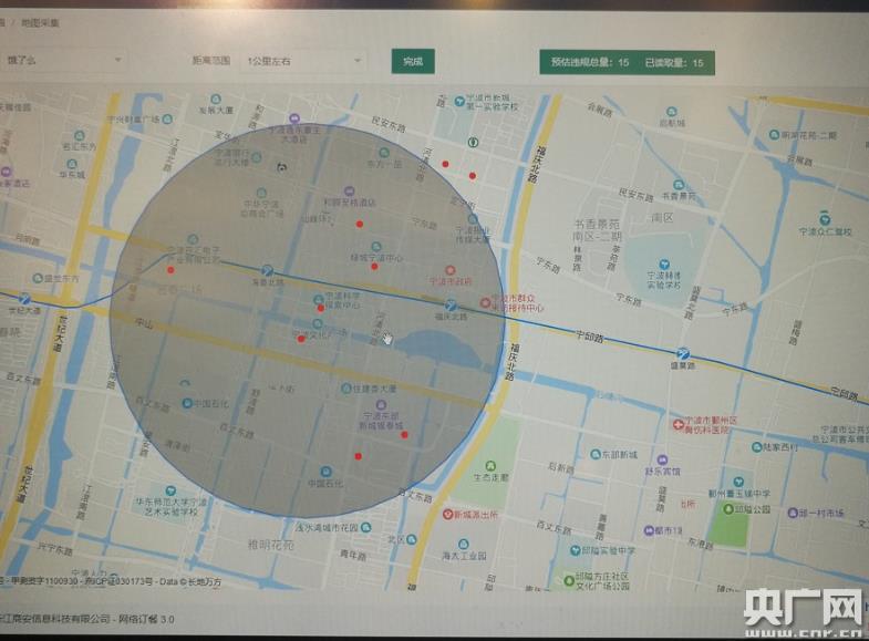 1月17日上午10:30左右,市場監(jiān)管局工作人員通過網(wǎng)絡訂餐智能監(jiān)控系統(tǒng),把搜索中心點定位在寧波文化廣場,系統(tǒng)在其周圍方圓一公里的范圍內(nèi)進行掃描,尋找問題店鋪。僅僅用了不到30秒的時間,系統(tǒng)屏幕上就出現(xiàn)了3個紅點,這些紅點正是問題店鋪。操作人員選取了其中一個紅點,點開后,發(fā)現(xiàn)這是一家壽司店,其上傳的食品經(jīng)營許可證是一張隨便找來的類似的照片,營業(yè)執(zhí)照處顯示空白,屬典型的證照不全。操作人員立即進入監(jiān)管執(zhí)法,把這家店鋪的違規(guī)信息推送到鄞州區(qū)新城市場監(jiān)督管理所,執(zhí)法人員掌握信息后,就可及時趕到店鋪進行線下執(zhí)法。同時,操作人員還把違規(guī)信息推送給了商家和所屬網(wǎng)絡訂餐平臺,督促限期整改。