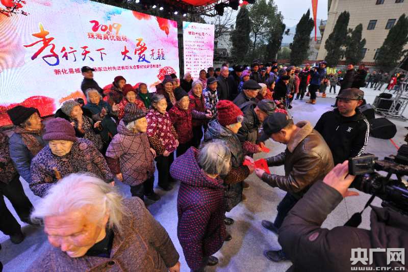 活動現(xiàn)場,排排高掛的橫幅對聯(lián),把現(xiàn)場裝點的格外喜慶,村里的鄉(xiāng)親們扶著老人,牽著小孩,紛紛有序步入會場。一頭是早已搭好的舞臺,一頭是依次擺好的四百桌宴席。開席后,雪花丸子、新化魚凍、柴火臘肉……9道寓意長長久久的新化美味佳肴相繼端上飯桌,大家圍桌而坐,品美食、聊生活、看大戲,盡是一番其樂融融的熱鬧景象。