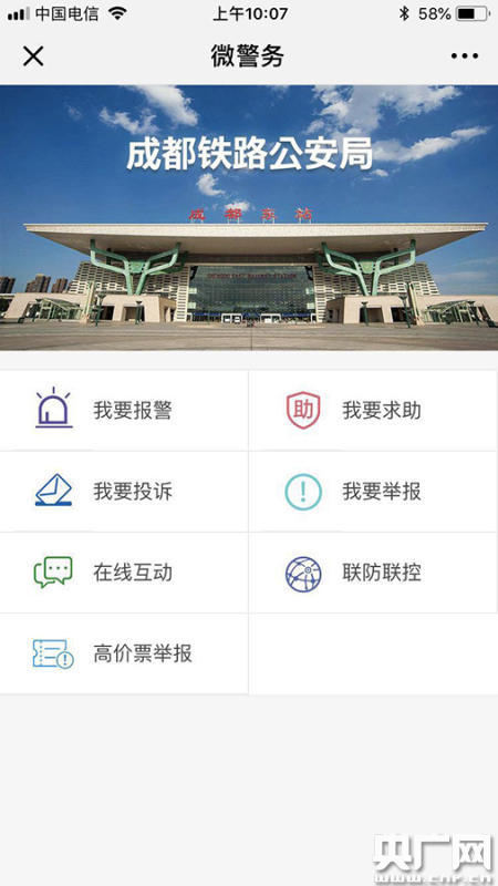 “成鐵公安微警務(wù)”微信服務(wù)平臺(央廣網(wǎng)發(fā) 手機(jī)截圖)