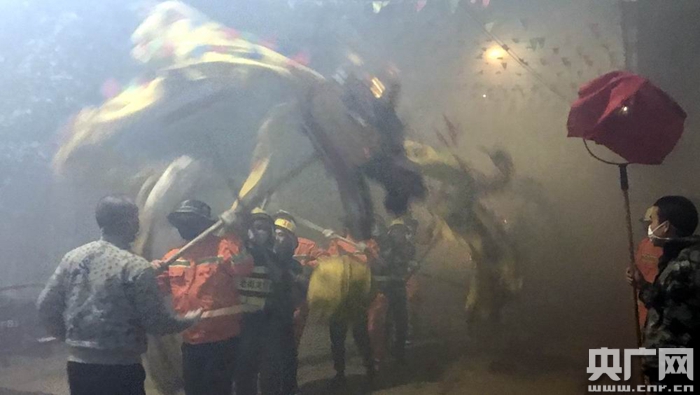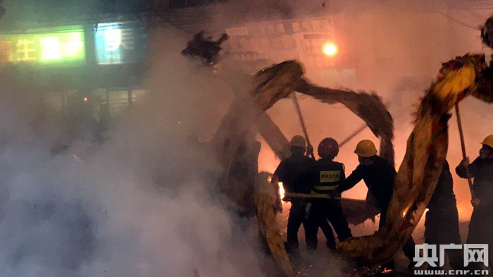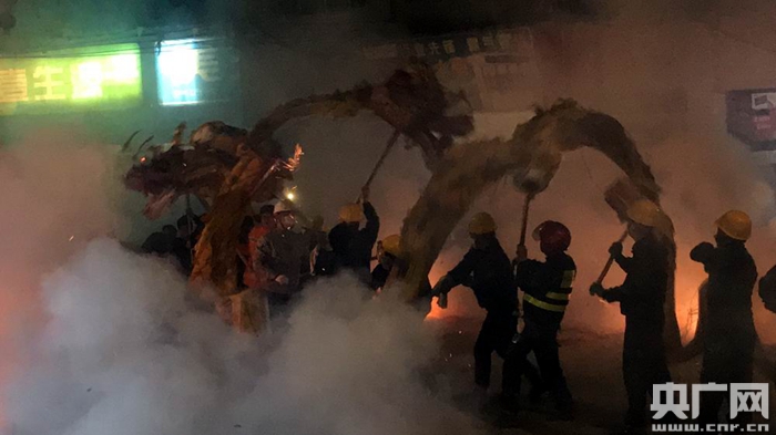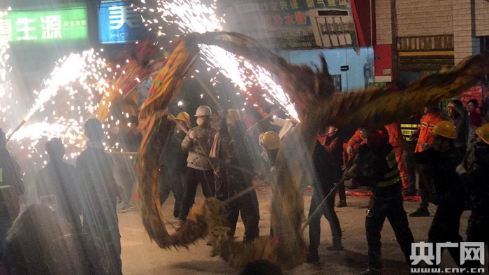 龍舞新春開年頭,煙花散盡好年來。2月13日晚,西坪鎮(zhèn)鬧新春現(xiàn)場(央廣網(wǎng)記者 陳屹 攝)