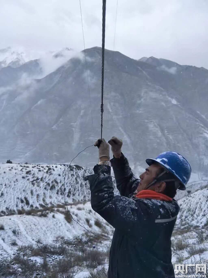 國網(wǎng)玉樹供電公司運(yùn)檢員在進(jìn)行線路檢修(央廣網(wǎng)發(fā) 國網(wǎng)青海省電力公司供圖)