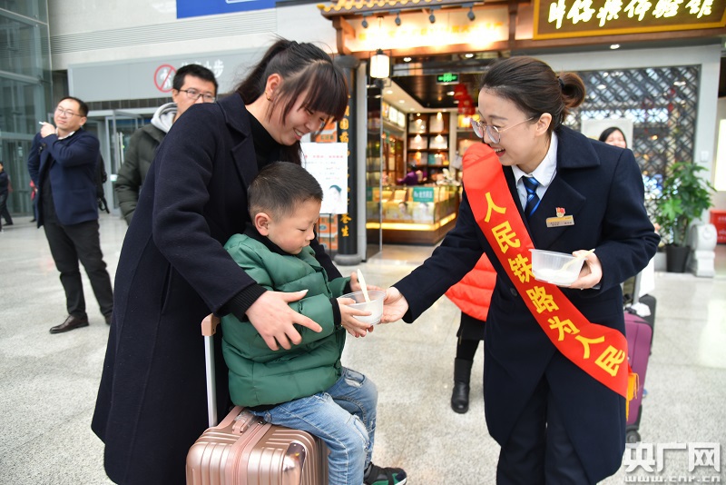 “高鐵站”送湯圓(央廣網(wǎng)發(fā) 江曲 攝)