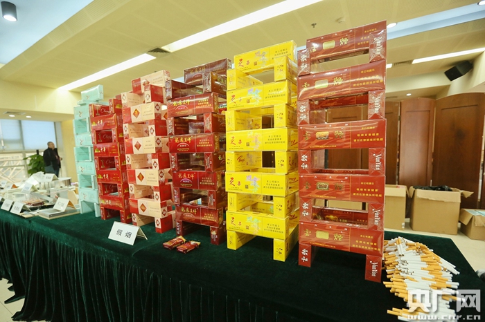 央廣網(wǎng)重慶2月27日消息(記者陳鵬)近日,重慶市公安局、重慶市煙草專賣局聯(lián)合召開“黎明”專項行動通報會,通報專項行動中破獲的特大制售假煙團伙案,該案共抓獲犯罪嫌疑人36人,查獲制假窩點4個,查獲大型卷接煙機、包裝機、封口機、激光打碼機、鋼印機等制假設備,查獲假冒偽劣卷煙合計223萬支、煙絲28.4噸、其他原輔材料100余噸,涉案金額上億元。