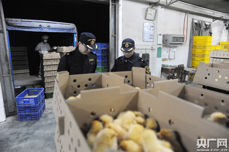 黃埔海關(guān)驗(yàn)放17000只供港雞苗 陳志軍 攝