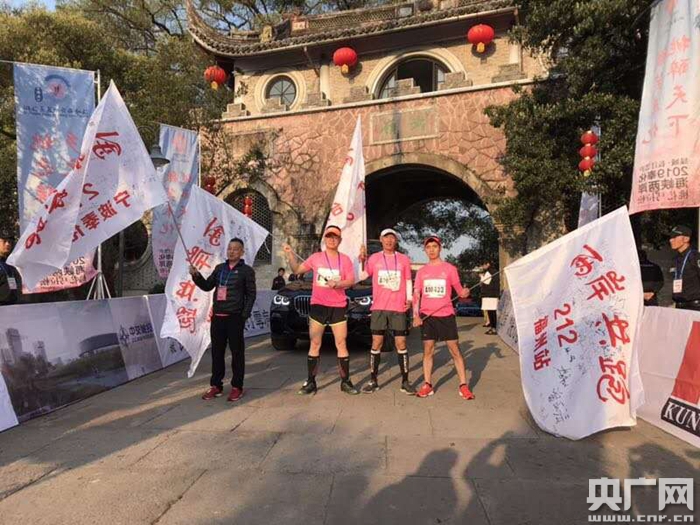 參賽選手在奉化溪口武嶺門合影(央廣網(wǎng)發(fā) 陳潔華 攝)