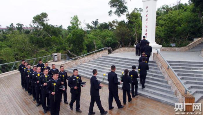 上午10時(shí)許,萬山邊檢站的移民警察手持菊花,神情凝重地敬獻(xiàn)在桂山艦烈士紀(jì)念碑前,并通過列隊(duì)肅目、鞠躬、默哀,深切緬懷烈士的光輝業(yè)績(jī),追思他們英勇頑強(qiáng)、不怕犧牲、無私奉獻(xiàn)、忠誠(chéng)為民的革命精神。
