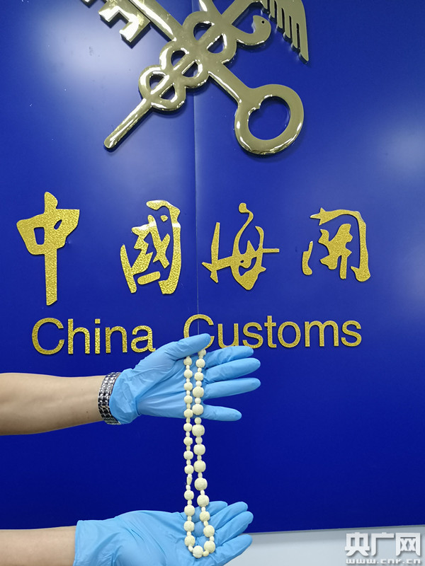 圖為查獲的含有象牙的項鏈。(央廣網(wǎng)發(fā) 湛江海關(guān)供圖)