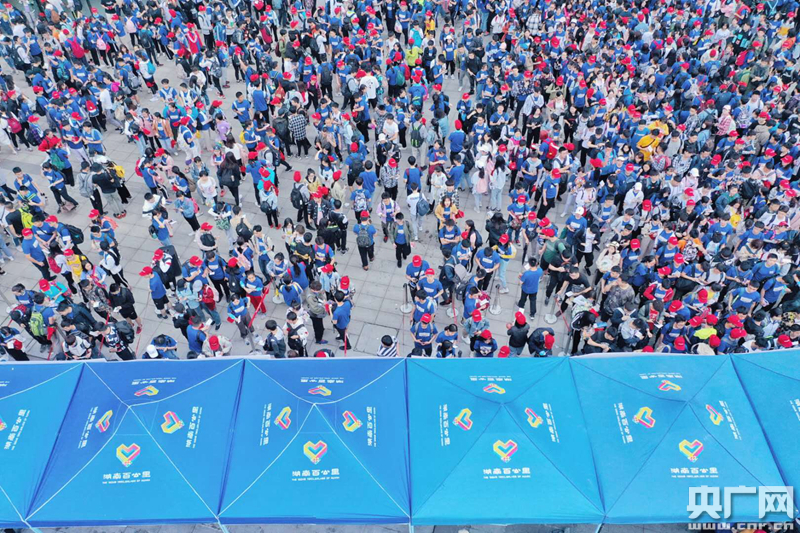 早上七點,活動起點長沙中盈廣場人頭攢動。湖南日報供圖