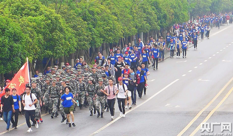 央廣網(wǎng)長沙4月20日消息(記者姜文婧 通訊員萬絲柳)“我們都是追夢人,千山萬水奔向天地跑道!”晨光剛剛照拂湘江兩岸,朝氣蓬勃的歌聲就在長沙中盈廣場上響起,一萬多名健走愛好者在這里集合。7時許,由共青團湖南省委、湖南省體育局、湖南日報社主辦,多家高校、社會組織、企業(yè)聯(lián)合承辦的“2019湖南(春季)百公里”健走活動宣布正式開始,由19000余人組成的健走隊伍浩浩蕩蕩,他們將沿著湘江徒步穿越長沙、湘潭、株洲三個城市,預計整個行程需要兩天時間。