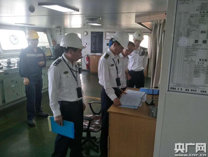 檢查船舶文書。(央廣網(wǎng)發(fā) 通訊員供圖)