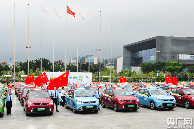 1500輛純電出租車現(xiàn)場(chǎng)出車投入營(yíng)運(yùn)。(央廣網(wǎng)發(fā) 主辦方供圖)
