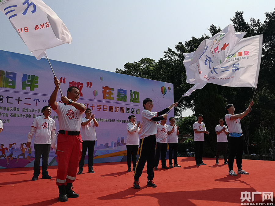 央廣網泉州5月11日消息(記者張子亞 通訊員趙凌峰)今天上午,在福建泉州市古城文廟廣場,由福建省紅十字會、泉州市委文明辦、泉州市紅十字會聯合主辦的“愛心相伴 ‘救’在身邊”——福建省紀念第72個“世界紅十字日”健步宣傳活動正在這里舉行。愛心企業(yè)、愛心人士代表、紅十字會工作者、紅十字志愿者、紅十字青少年及愛心媒體、愛心市民約800人參加活動。