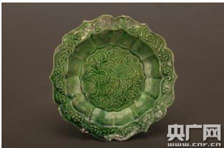 磁灶窯綠釉印花卉紋折沿菱口碟(央廣網(wǎng)發(fā) “南海I號”考古隊提供)