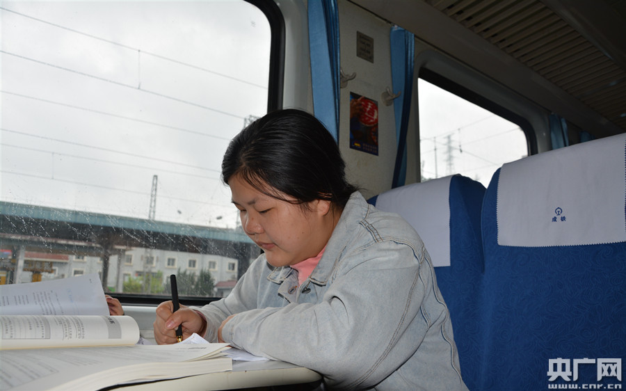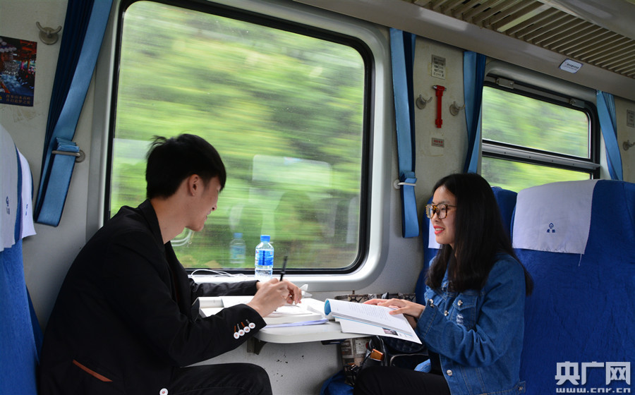 慢火車(chē)上做功課(央廣網(wǎng)發(fā) 貴陽(yáng)客運(yùn)段供圖)