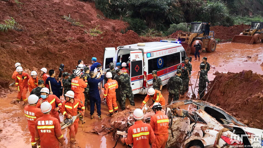 央廣網(wǎng)龍巖6年14日消息(記者萬存靈)13日下午16:09,福建省龍巖市武平縣平川街道東門市場西南方向小山坡因近日持續(xù)強降雨(過程雨量達242毫米),雨水飽和突發(fā)局部山體滑坡,導(dǎo)致道路交通中斷,路邊臨時停放的多部車輛被掩埋,武警福建總隊龍巖支隊接到情況后,立即派出官兵,趕往事發(fā)地點,全力組織現(xiàn)場處置救援。截止當(dāng)日晚19:45,經(jīng)過3個多小時全面緊張排查搜救,現(xiàn)場發(fā)現(xiàn)一名男子被困車中,救出后經(jīng)醫(yī)務(wù)人員現(xiàn)場緊急搶救無效死亡。