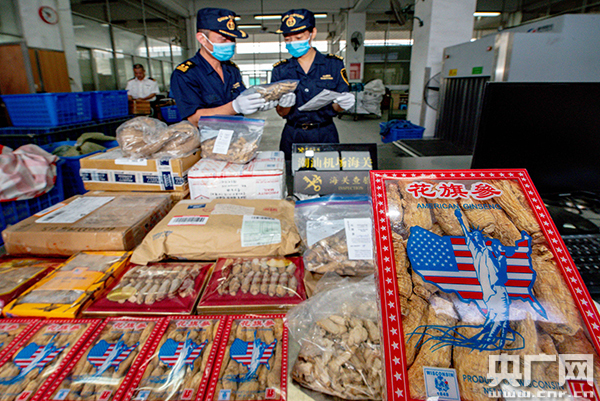 汕頭海關(guān)在美國入境郵件中查獲疑似瀕危植物西洋參及制品。(央廣網(wǎng)發(fā) 袁國宏攝)