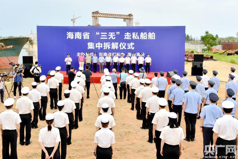 海南省集中拆解“三無”走私船舶(央廣網(wǎng)發(fā) 海南省公安廳提供)