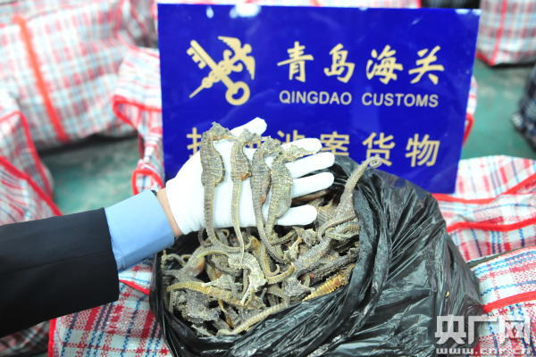 青島海關(guān)查獲全國最大海馬干走私案(央廣網(wǎng)發(fā) 張進(jìn)剛攝)