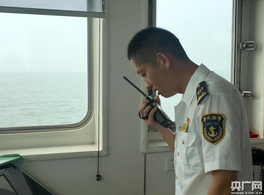 演習(xí)現(xiàn)場(chǎng),“神華505”在“神華拖8”的護(hù)航下返航。(央廣網(wǎng)見(jiàn)習(xí)記者 張曉琳 攝)