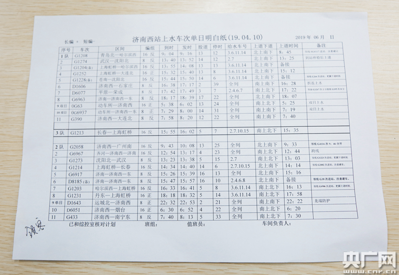 除了圖定的上水車(chē)次,最讓給水隊(duì)緊張的是那些應(yīng)急上水的車(chē)次。濟(jì)南西站后服車(chē)間給水值班員王笑癡告訴記者,當(dāng)列車(chē)晚點(diǎn)或者車(chē)上用水量大的時(shí)候,有時(shí)就需要應(yīng)急上水。當(dāng)然,應(yīng)急上水有一套固定的流程,“遇到應(yīng)急上水的情況,列車(chē)長(zhǎng)先通知路局的調(diào)度,調(diào)度再通知我們這兒的綜合控制室,然后再通知到我們。”應(yīng)急上水的時(shí)間一般有20分鐘左右,看似時(shí)間充足,其實(shí)可能比圖定上水還要緊張,“出現(xiàn)應(yīng)急上水情況的時(shí)候,其他隊(duì)基本都在負(fù)責(zé)自己的圖定的上水工作,在這20分鐘之內(nèi),我需要組織盯控人員,包括我自己,如果人員還不夠的話,還可以從車(chē)間抽調(diào)領(lǐng)導(dǎo)干部,然后趕到現(xiàn)場(chǎng)完成上水任務(wù),不能耽誤乘客的用水!