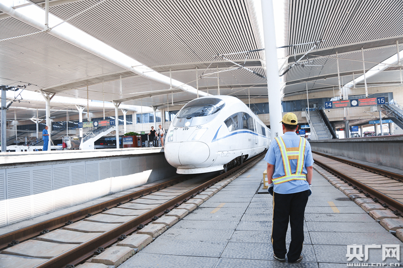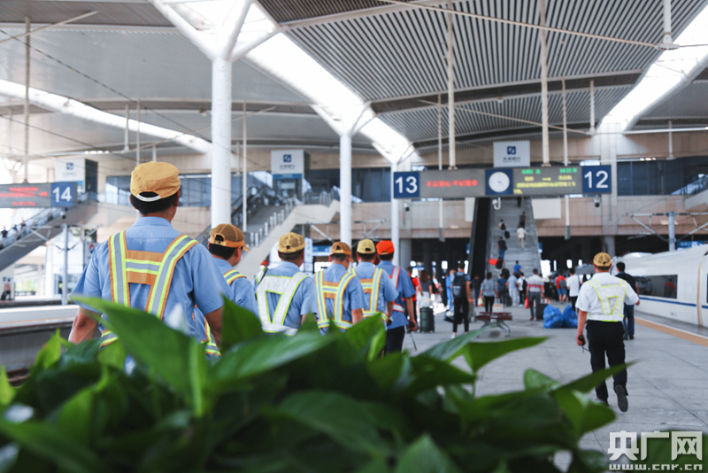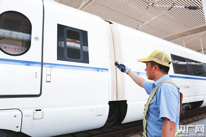 據(jù)丙班上水隊(duì)隊(duì)長(zhǎng)楊勇志介紹,與傳統(tǒng)列車(chē)不同,高鐵列車(chē)運(yùn)行密度大、站停時(shí)間短,上水工作通常只能在5分鐘左右的時(shí)間內(nèi)完成,而每趟列車(chē)至少需要為4個(gè)車(chē)廂補(bǔ)給用水,暑運(yùn)期間上水量增加,一趟車(chē)經(jīng)常需要補(bǔ)水6-8節(jié)車(chē)廂,這就導(dǎo)致工作時(shí)間緊張,“基本上是與時(shí)間賽跑”。