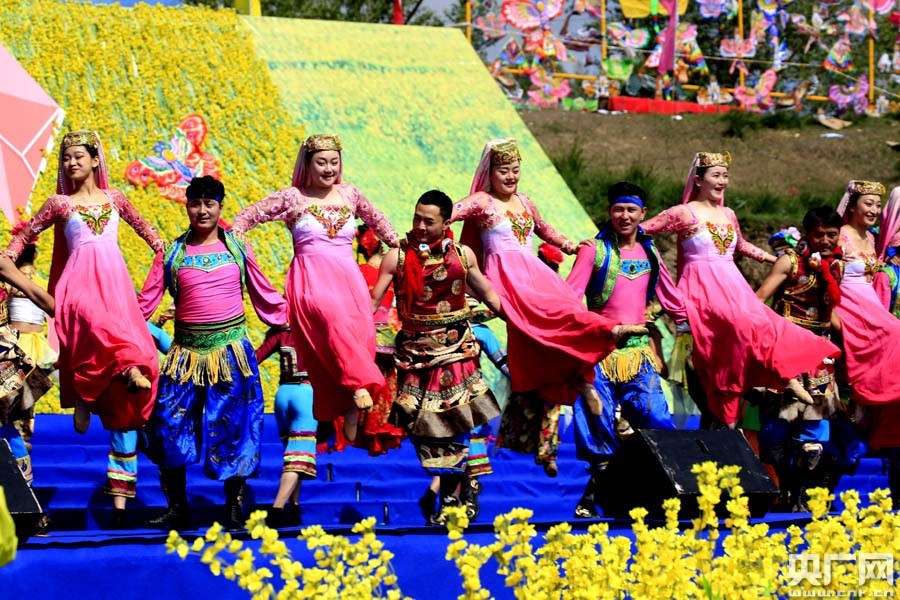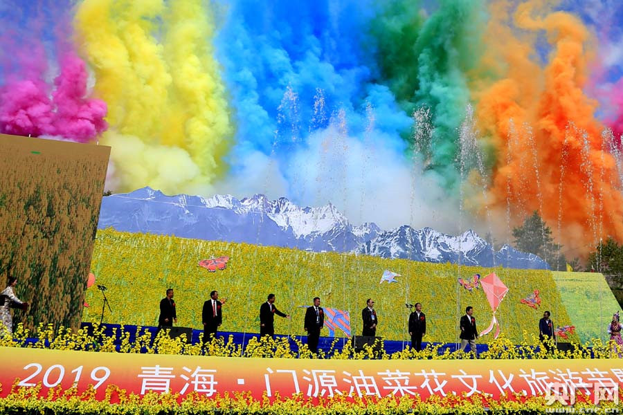 2019青!らT源油菜花文化旅游節(jié)暨首屆中國祁連山風箏節(jié)開幕(央廣網(wǎng)記者 張雷 攝)