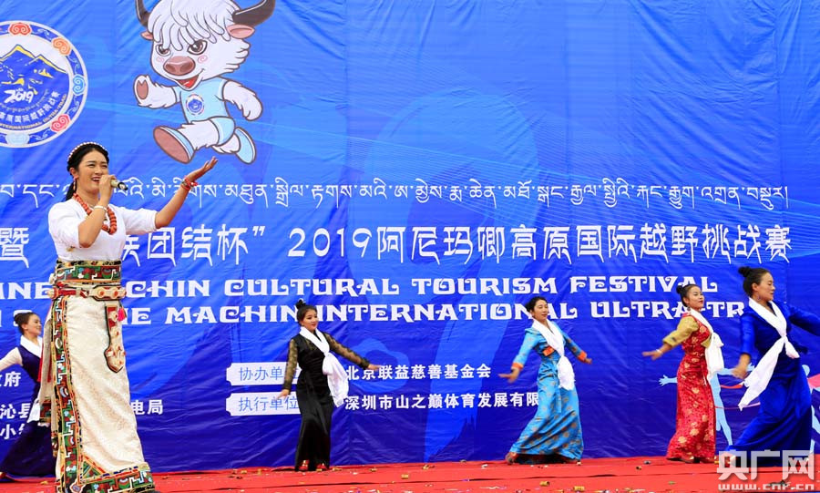 第五屆青海·瑪沁阿尼瑪卿文化旅游節(jié)暨“民族團(tuán)結(jié)杯”2019阿尼瑪卿高原國(guó)際越野挑戰(zhàn)賽開(kāi)幕式(央廣網(wǎng)記者 張雷 攝)