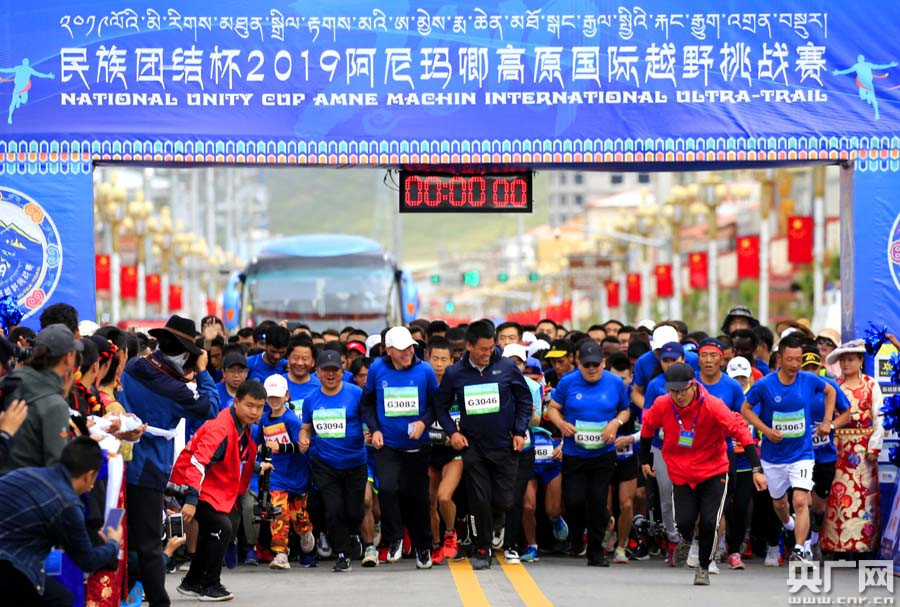 “民族團(tuán)結(jié)杯”2019阿尼瑪卿高原國(guó)際越野挑戰(zhàn)賽鳴槍起跑(央廣網(wǎng)記者 張雷 攝)