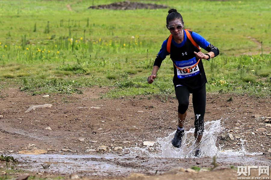 外國(guó)選手跑過(guò)美麗的草甸湖泊(央廣網(wǎng)記者 張雷 攝)