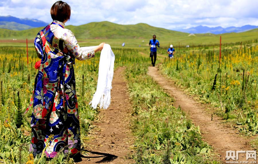 來(lái)自香港的選手胡女士第一次在內(nèi)地參加高原的跑步比賽,完成比賽后她表示:高原跑步雖然挑戰(zhàn)大,但青,斍叩乃{(lán)天綠草和藏族志愿者的熱情支持著她跑完全程,瑪沁真是一個(gè)圣潔美麗的地方。