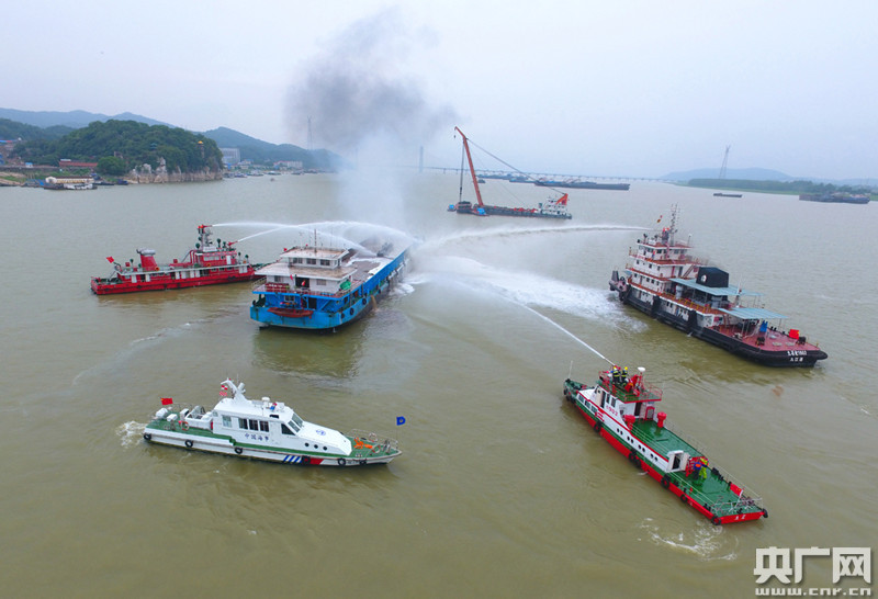 海事部門組織開展滅火救援。(央廣網(wǎng)發(fā) 長江海事局供圖)