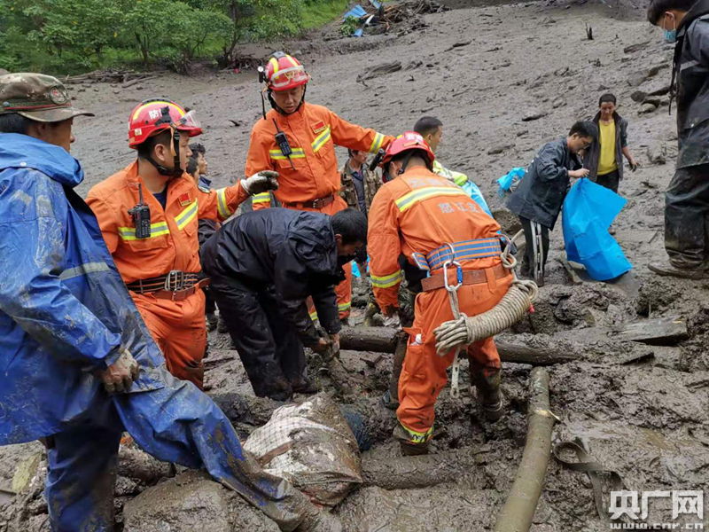 11時23分,消防救援人員和現(xiàn)場搜尋人員搜尋到2名失聯(lián)人員(均已遇難),隨即,消防救援人員利用多功能擔(dān)架將遇難者進(jìn)行轉(zhuǎn)移。