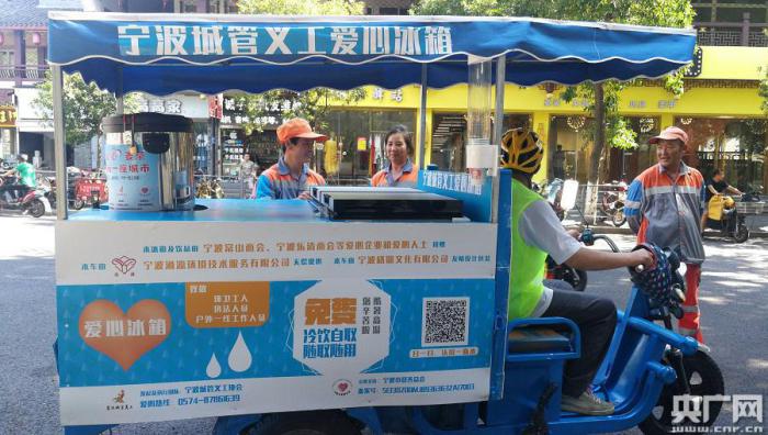 “冰箱里的水和冷飲是免費(fèi)提供給所有戶外工作者的。”寧波城管義工協(xié)會(huì)專職副秘書長陳澤州說,“愛心冰箱”項(xiàng)目始于2018年,由寧波城管義工協(xié)會(huì)聯(lián)合寧波市慈善總會(huì)發(fā)起,目的是給環(huán)衛(wèi)工等城市戶外工作者送去一份清涼。