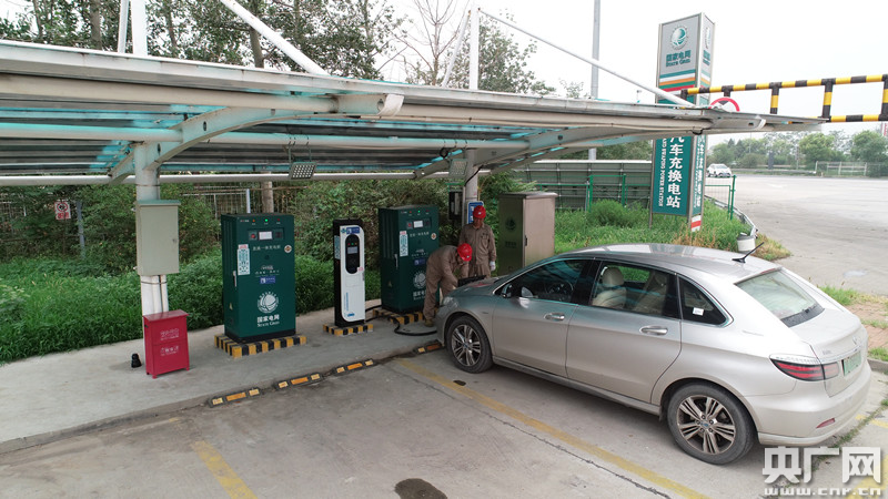 京津塘高速徐官屯服務(wù)區(qū)的電動(dòng)汽車充電站(央廣網(wǎng)發(fā) 主辦方供圖)