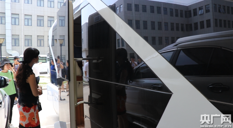 采訪團(tuán)參觀全自動(dòng)駕駛智能網(wǎng)聯(lián)通勤車(央廣網(wǎng)記者 褚夫晴 攝)