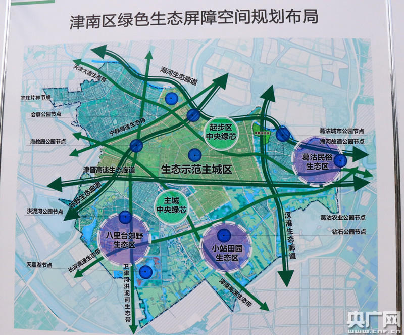 津南區(qū)綠色生態(tài)屏障空間規(guī)劃布局圖(央廣網(wǎng)記者 褚夫晴 攝)