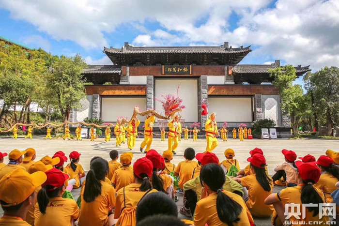 活動期間,百名來自全國各地的青少年走進根宮感悟開化文化。在根宮佛國,青少年廣場上身穿戲曲行頭的高蹺竹馬、獨具特色香草舞龍的表演,把學(xué)生們迷的目不轉(zhuǎn)睛。看完表演的他們躍躍欲試,紛紛申請自己也當(dāng)一回“表演者”。同時進行著的還有剪紙課堂,一席長桌坐滿了學(xué)生。他們一邊聽老師的講解,一邊“小試牛刀”,發(fā)揮著自己的想象力,開始在剪紙中創(chuàng)作著屬于自己的作品。5日下午,青少年還將走進錢江源國家公園,開啟原始森林的神秘之旅。