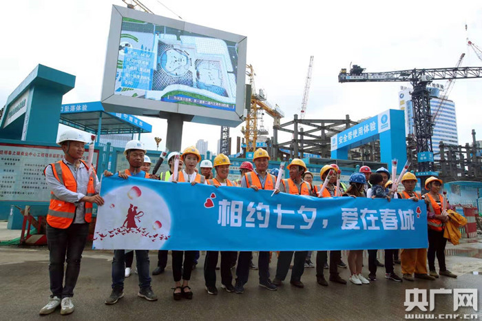 8月6日,記者目睹了中建二局云南分公司春之眼項目部以工地為鵲橋,精心組織的一場以“相約七夕,筑夢云滇”為主題的工地集體情人節(jié)活動。