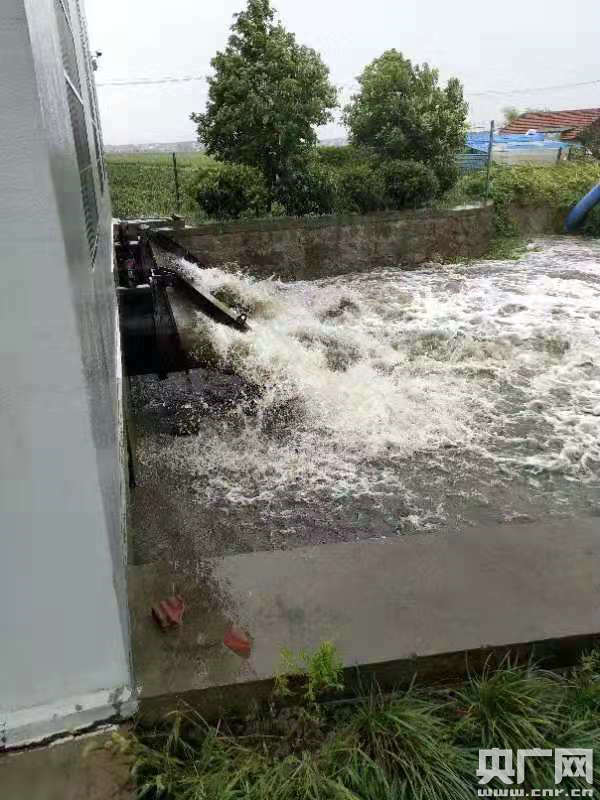 余姚市泗門鎮(zhèn)東蒲村陸家莊排澇站8月10日早上開閘排水 (央廣網(wǎng)發(fā) 余姚市委宣傳部供圖)