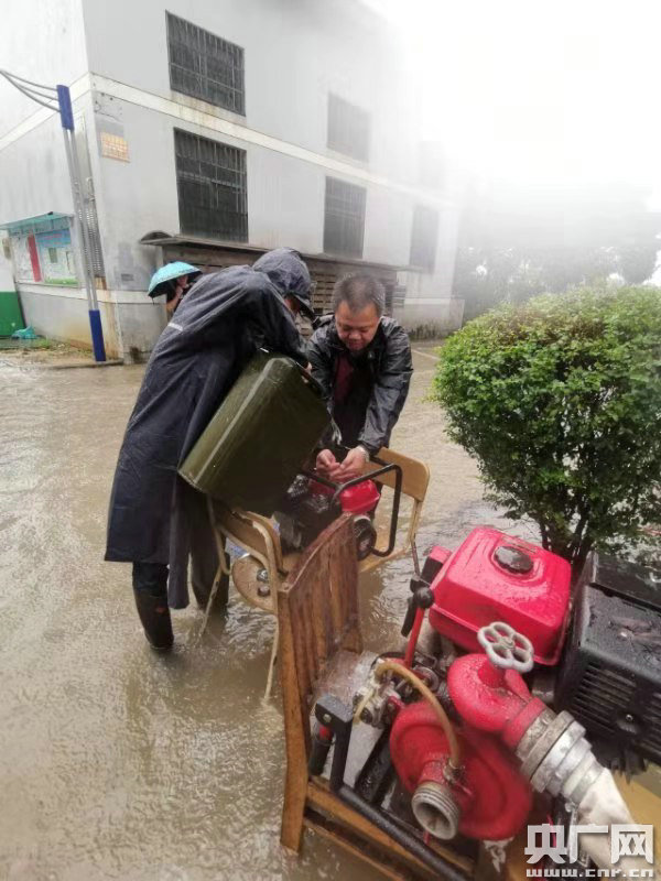 寧波市江北區(qū)聯(lián)村干部對河西村梅龍小區(qū)進(jìn)行排水 (央廣網(wǎng)發(fā) 王枷喻攝)