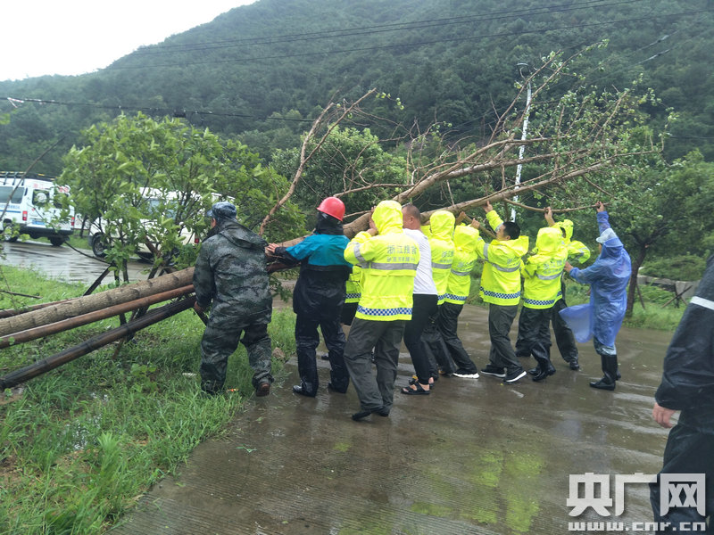 浙江孫茂芳救援隊(duì)在象山清理倒伏的樹木 (央廣網(wǎng)發(fā) 象山縣委宣傳部供圖)