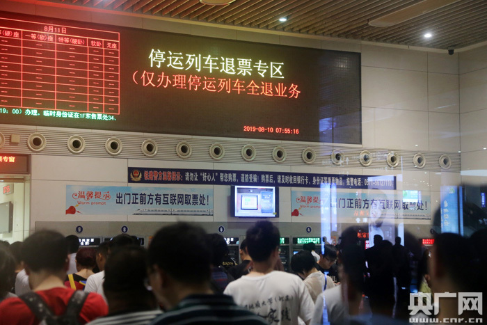8月10日,乘客在杭州東站設(shè)立的停運列車退票專區(qū)退票。(央廣網(wǎng)記者 魏煒 攝)