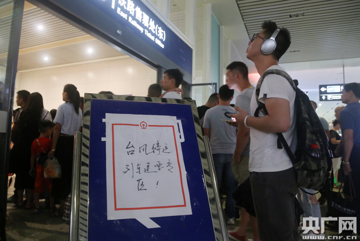 8月10日,杭州東站設(shè)立臺風(fēng)停運列車退票專區(qū)。(央廣網(wǎng)記者 魏煒 攝)