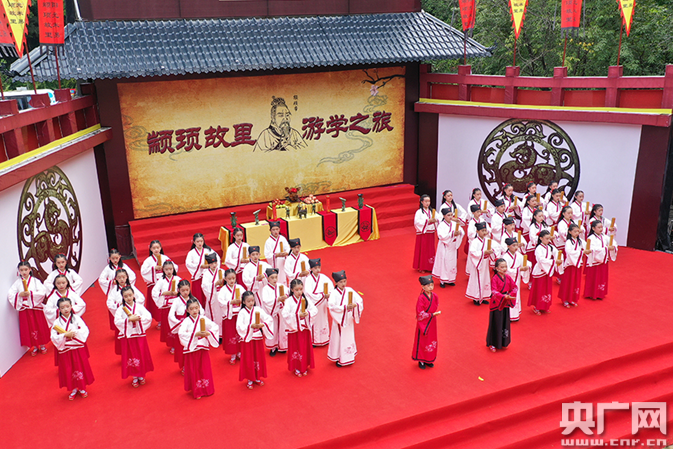 上午9時許,伴隨贊禮官的吟唱聲和古樂聲,表演隊伍入場。在凈手啟香、對顓頊行三揖禮之后,40名學(xué)生齊聲誦讀論語,表達(dá)崇文上進(jìn)及尊師之意。