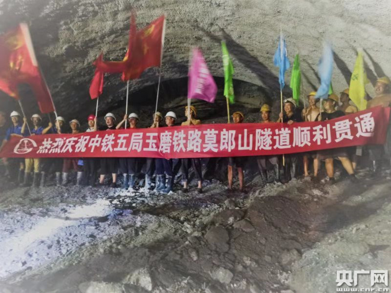 中老昆萬鐵路莫郎山隧道順利貫通(央廣網發(fā) 何增旺 攝)