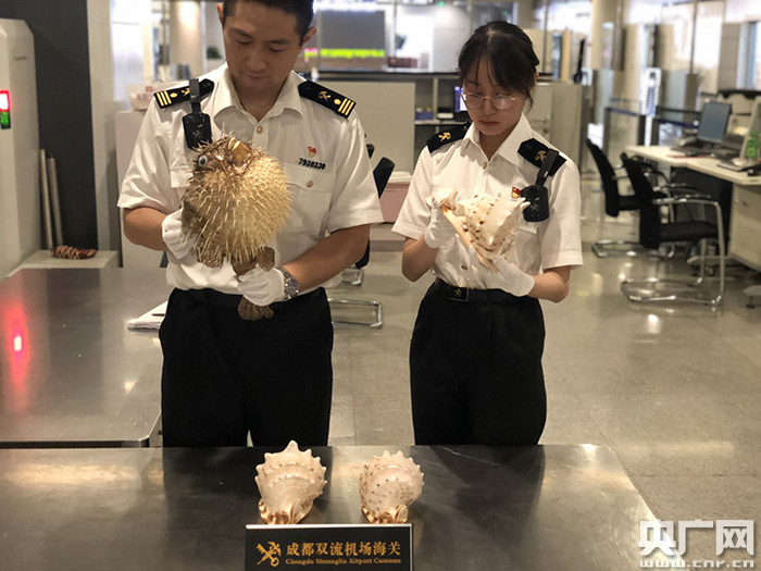 截獲刺豚標(biāo)本(央廣網(wǎng)發(fā) 成都海關(guān)供圖)