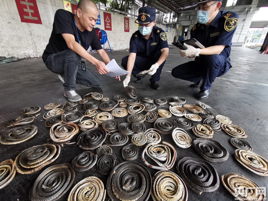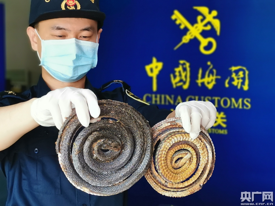 海關查獲瀕危蛇干違法入境(央廣網發(fā) 通訊員供圖)
