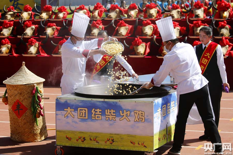 現(xiàn)場大鍋制作柴火雞(央廣網(wǎng)記者 張雷 攝)