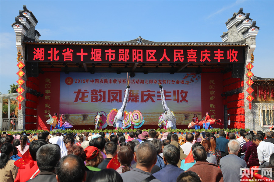 2019年9月23日,在湖北省十堰市鄖陽(yáng)區(qū)柳陂鎮(zhèn)龍韻村“龍韻鳳舞慶豐收”活動(dòng)現(xiàn)場(chǎng),當(dāng)?shù)厝罕姳硌荨栋鰵の琛。(央廣網(wǎng)發(fā) 通訊員曹忠宏 攝)