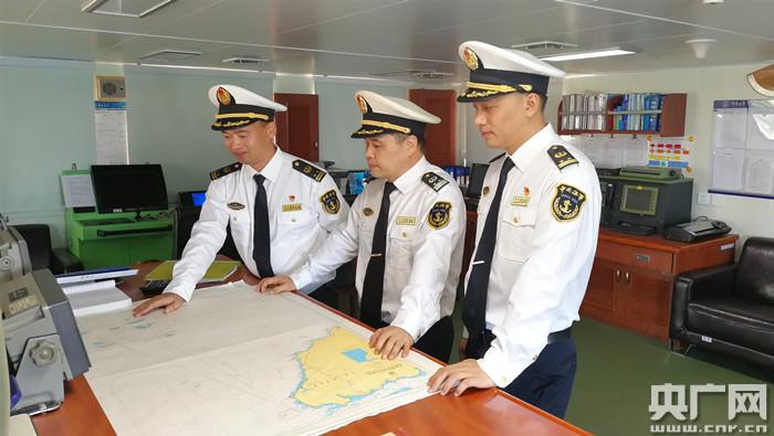 海南海事“海巡21”輪?趩⒊萄埠胶D蠉u東部及西沙水域(央廣網(wǎng)發(fā) 照片由海南海事局提供)